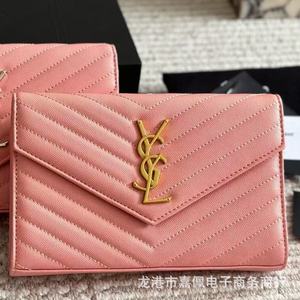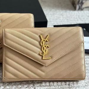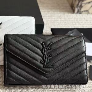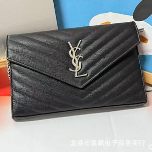 外单纯色v纹链条信封包鱼子酱牛皮斜挎简约休闲隔层woc手拿跨境包