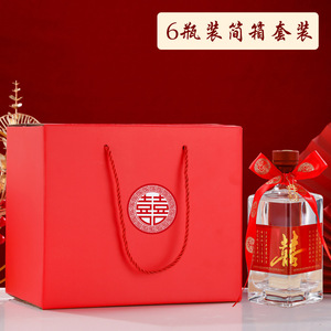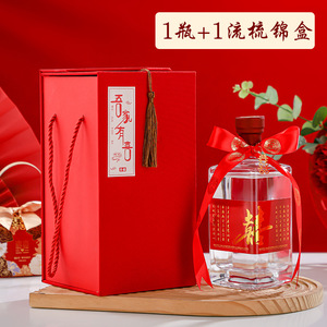 厂家批发婚宴订婚喜酒瓶透明酒瓶一斤装方型空酒瓶喜事用玻璃酒瓶