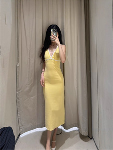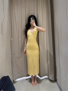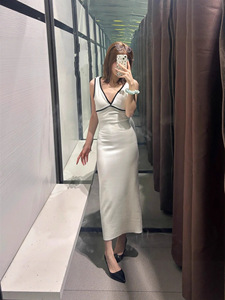 ZR女装外贸2025新品 法式气质时尚显瘦无袖V领长款连衣裙 5584136