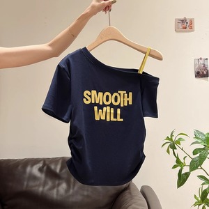 不规则吊带辣妹斜领短袖t恤设计感百搭夏季气质美式时尚修身上衣