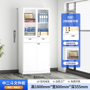 钢制书柜客厅收纳柜防尘玻璃门展示柜铁艺组合储物柜一体靠墙书柜