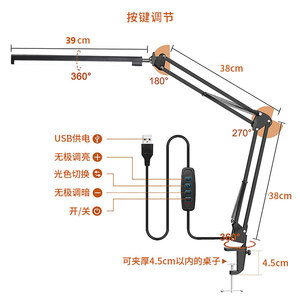 长臂led学生儿童台灯学习用护眼灯宿舍卧室床头台灯电脑屏幕灯USB