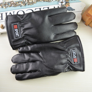 冬季保暖手套加厚加绒触屏防风手套PU皮电动车骑行情侣手套男女士