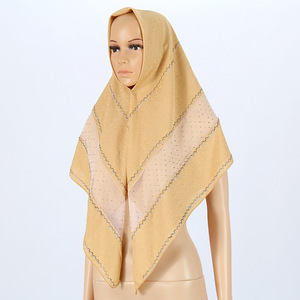 外贸民族风手工烫钻包头头巾 中东纯色盖头方巾 回族包头纱巾批发