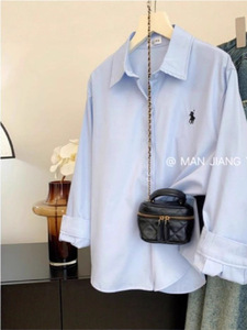 小马刺绣衬衫女宽松2025韩系简约高级设计感通勤衬衣时尚休闲长袖