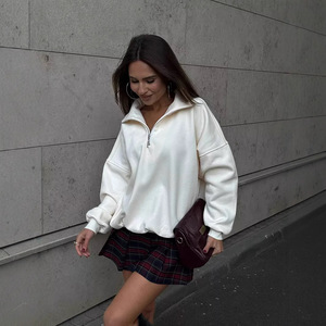 2024秋冬季纯色外穿半拉链立领洋气潮流加绒加厚翻领卫衣宽松上衣