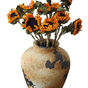 ひまわり10本+レトロ両耳花瓶