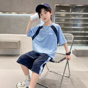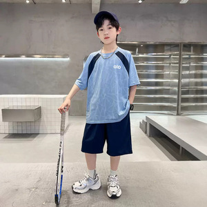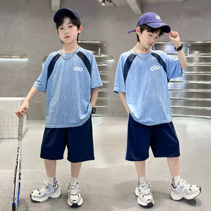 夏季冰感男童夏装网眼速干套装运动男帅气纯色洋气韩版