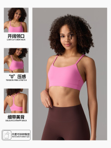 跨境运动文胸女健身内衣抗菌裸感内搭跑步背心细肩带美背带胸垫女
