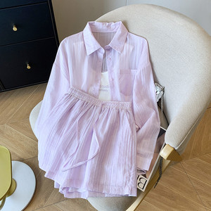 T5C 夏服と日焼け止めシャツスーツの完全なセット女性のための 2025 新しいカジュアルシャツサスペンダーショーツ 3