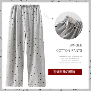 新款秋季冰瓷棉孕妇睡裤可调节长裤月子裤产后宽松波点居家裤子