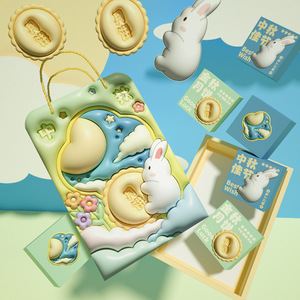 【1套】6粒胖胖风玉兔月饼礼盒(实物是平面的)