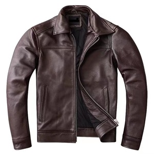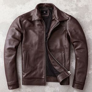 头层牛皮皮衣男修身皮夹克翻领深棕商务休闲外套厚实春秋单衣