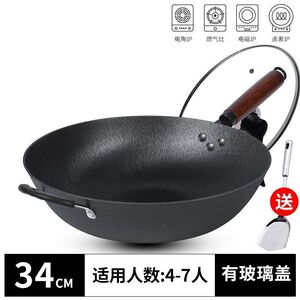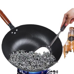 昔ながらの鋳鉄鍋家庭用鋳鉄中華鍋ノンスティックノンコーティングガス中華鍋平底シングル底
