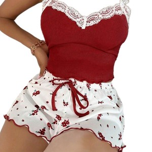 欧美家居服蕾丝吊带短裤套装舒适弹力居家休闲可外穿睡衣女
