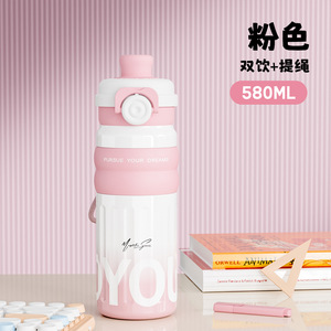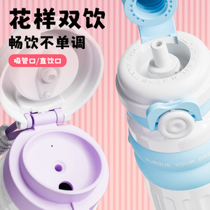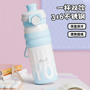 高颜值保温杯带吸管316不锈钢儿童水杯女大容量上学专用2025新款