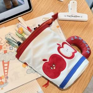 简约苹果竖桶笔袋ins风高颜值小众设计学生文具大容量笔筒收纳袋