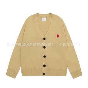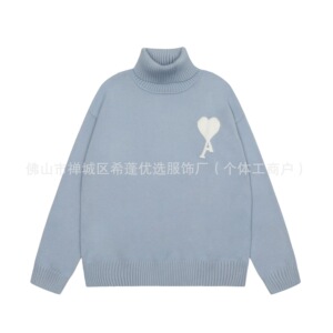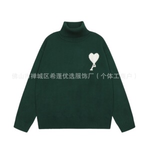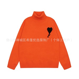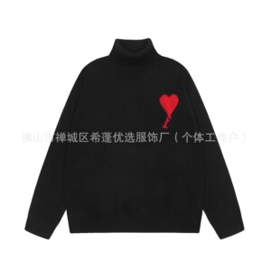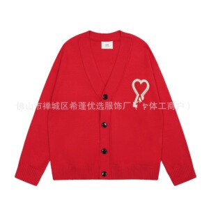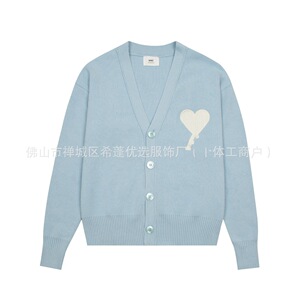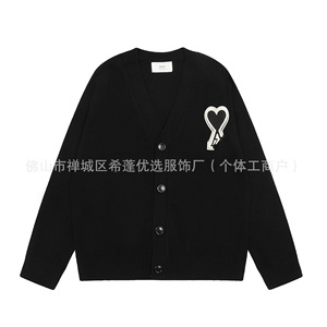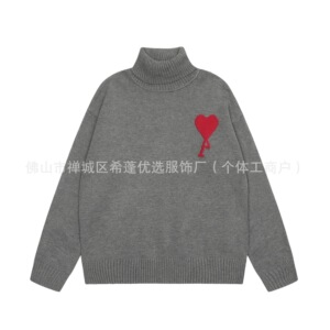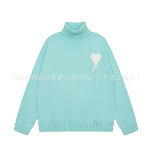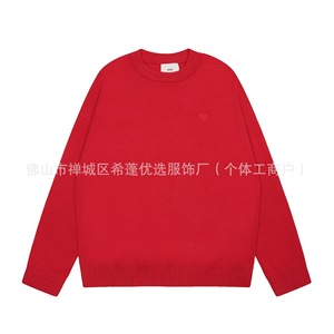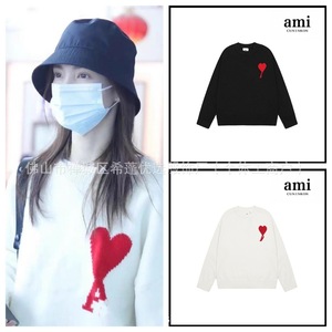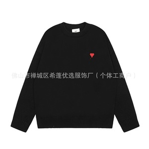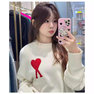 潮牌A毛衣大爱心提花圆领针织衫休闲宽松情侣装明星同款毛衣外套