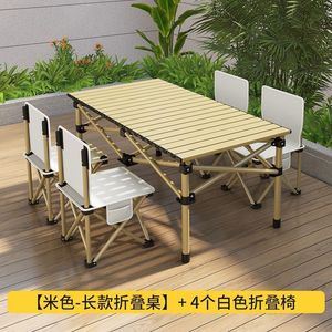 卡其【价优/稳固不晃】-120加长桌+4把58高折叠椅(+收纳袋)