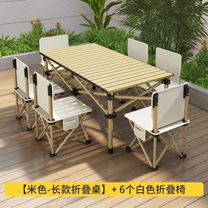 卡其【价优/稳固不晃】-120加长桌+6把58高折叠椅(+收纳袋)