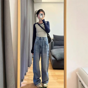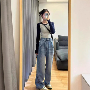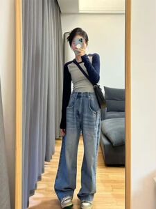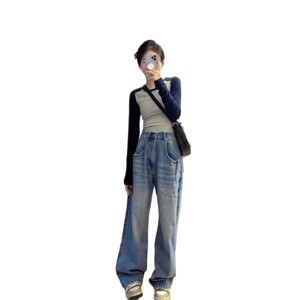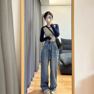 美式复古正肩撞色长袖t恤女洋气遮肉ins小众设计感插肩显瘦打底衫