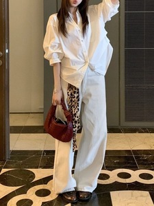 44AaSi 会凹造型的白衬衫 本期重推夏季翻领泡泡袖收腰衬衣