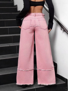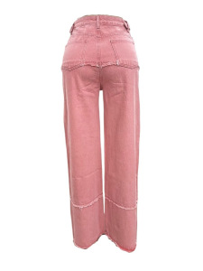 外贸欧美女装新款速卖通热卖个性时尚破洞拼接渐变粉色牛仔裤女