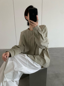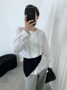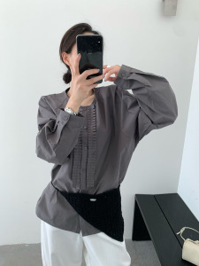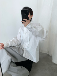 THINK十三行韩系简约气质木耳边衬衫女2025秋季新款宽松小众上衣