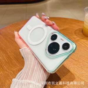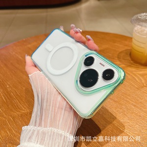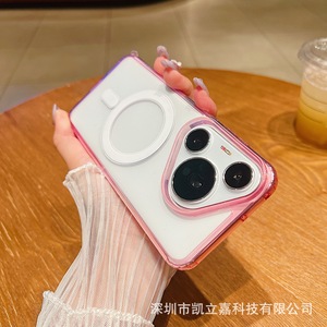 适用华为P80ultra渐变撞色磁吸手机壳MATE70PRO亚克力透明保护套