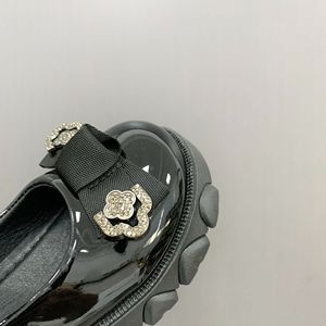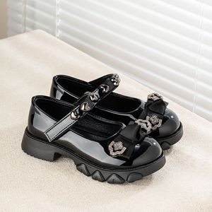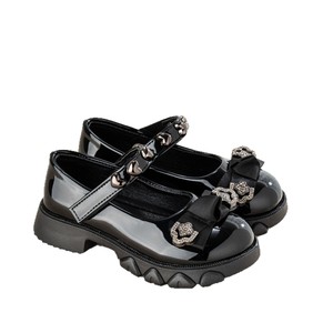 2025春秋新款女童皮鞋黑色水钻蝴蝶结公主鞋小女孩中大童软底单鞋