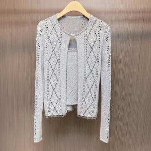 现货深圳南油货源休闲薄款针织开衫女2025秋新款气质镂空长袖上衣