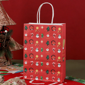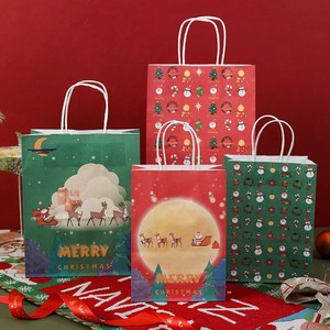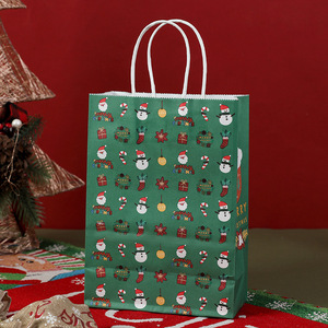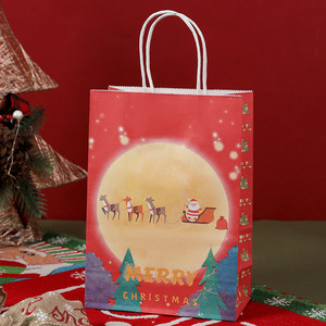 跨境现货新款圣诞节礼品袋卡通平安夜手提袋节日礼物牛皮纸包装袋
