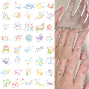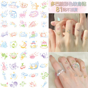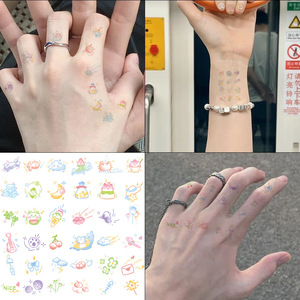 夏日多巴胺彩色小纹身贴卡通彩绘图案可爱少女手指手臂持久可洗贴