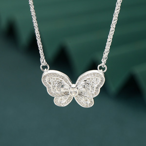 8436号足银990镶钻蝴蝶肖邦流苏项链金色银色小众配饰爆款锁骨