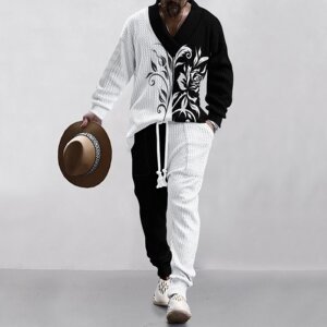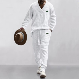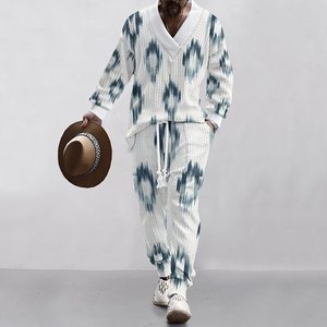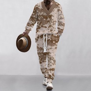 2025 クロスボーダーアマゾン迷彩ファッションメンズ V ネックカジュアルスウェットシャツ長袖ズボンスーツ肌に優しい紳士服