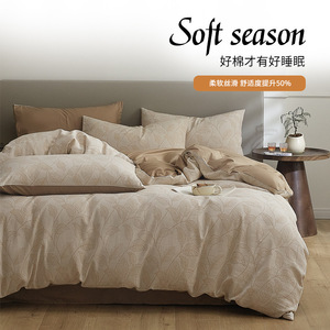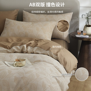 A类母婴级提花纯棉四件套无印风全棉裸睡床单被套床笠款床上用品4