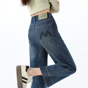 包邮 2025秋季新款复古弹力高腰刺绣九分牛仔裤女显瘦小个子直筒