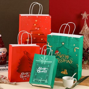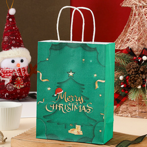 跨境现货新款圣诞节礼品袋手提袋竖款节日礼品包装袋平安夜礼物袋