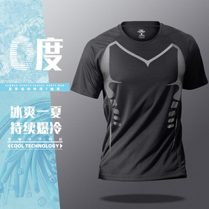 运动t恤男速干短袖冰丝夏季薄款上衣宽松健身跑步篮球训练服夏天
