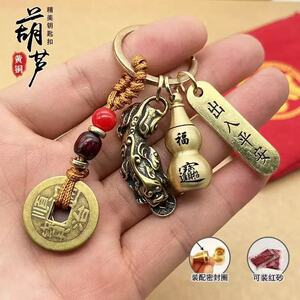 黄铜空心葫芦旋转钱十二生肖八大守护神葫芦钥匙扣小配饰挂件批发