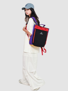 双肩包女轻便拼接撞色手提包学生通勤书包大容量户外旅行包电脑包