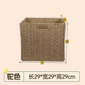 【驼色藤编收纳筐1个】三扣手29*29*29cm