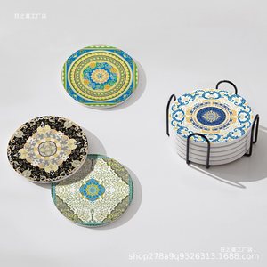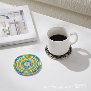 新疆特色礼物圆形杯垫陶瓷茶几餐桌厨房防水防滑民族挂画隔热垫无