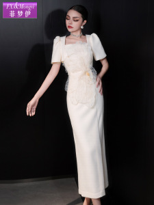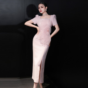 Feimengyi 輸入三酢酸立体フラワードレス女性の夏の気質フェミニンなスリムスクエアカラードレス