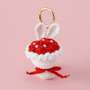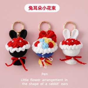 日本と韓国の完成品かぎ針編みウサギの耳小さな花束インスタイルかぎ針編みキーホルダー小さなバッグペンダント白雪ウサギの耳
