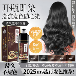 俏能植物盖白染发剂纯自己在家染发膏清水黑发温和无刺激一件代发
