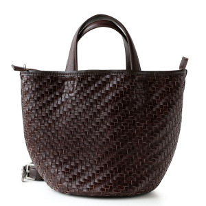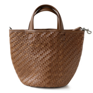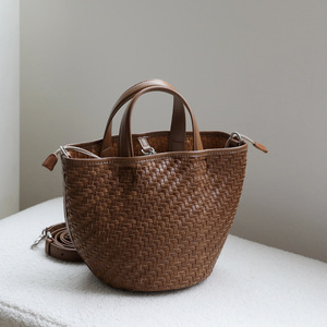 复古植鞣牛皮手工编织水桶包女菜篮子百搭手腕包单肩斜挎包