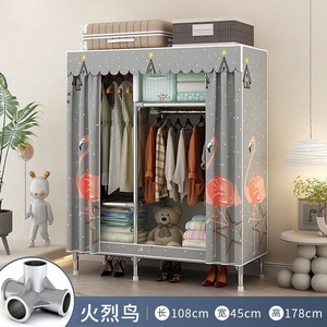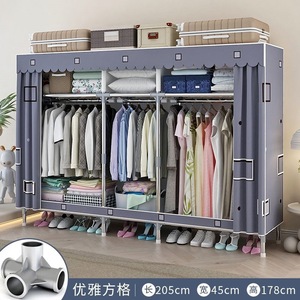 [アクティブ] シンプルなワードローブ、自宅の寝室の組み立て布製ワードローブ、賃貸住宅の収納、全鋼フレーム、厚みのある