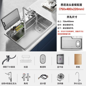 75×48cm火山银【4.0厚集渣槽】美式磁吸三档抽拉龙头+弹跳下水