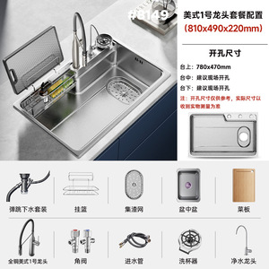 81×49cm火山银【4.0厚集渣槽】美式磁吸三档抽拉龙头+弹跳下水